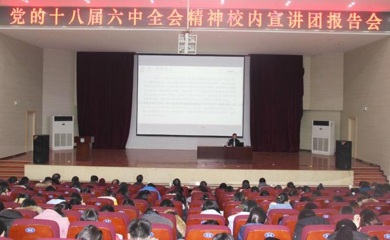 为贯彻校党委精神,深入学习十八届六中全会精神,在校党委宣传部的统一安排下,12月14日晚7:00,十八届六中全会校内宣讲团成员、交通学院党总支书记杜杰在南区学术交流中心为77779193永利官网师生作宣讲报告。我院党政领导班子成员、全体教师及千余名学生参加报告大会。报告会由党总支书记余国宇主持。