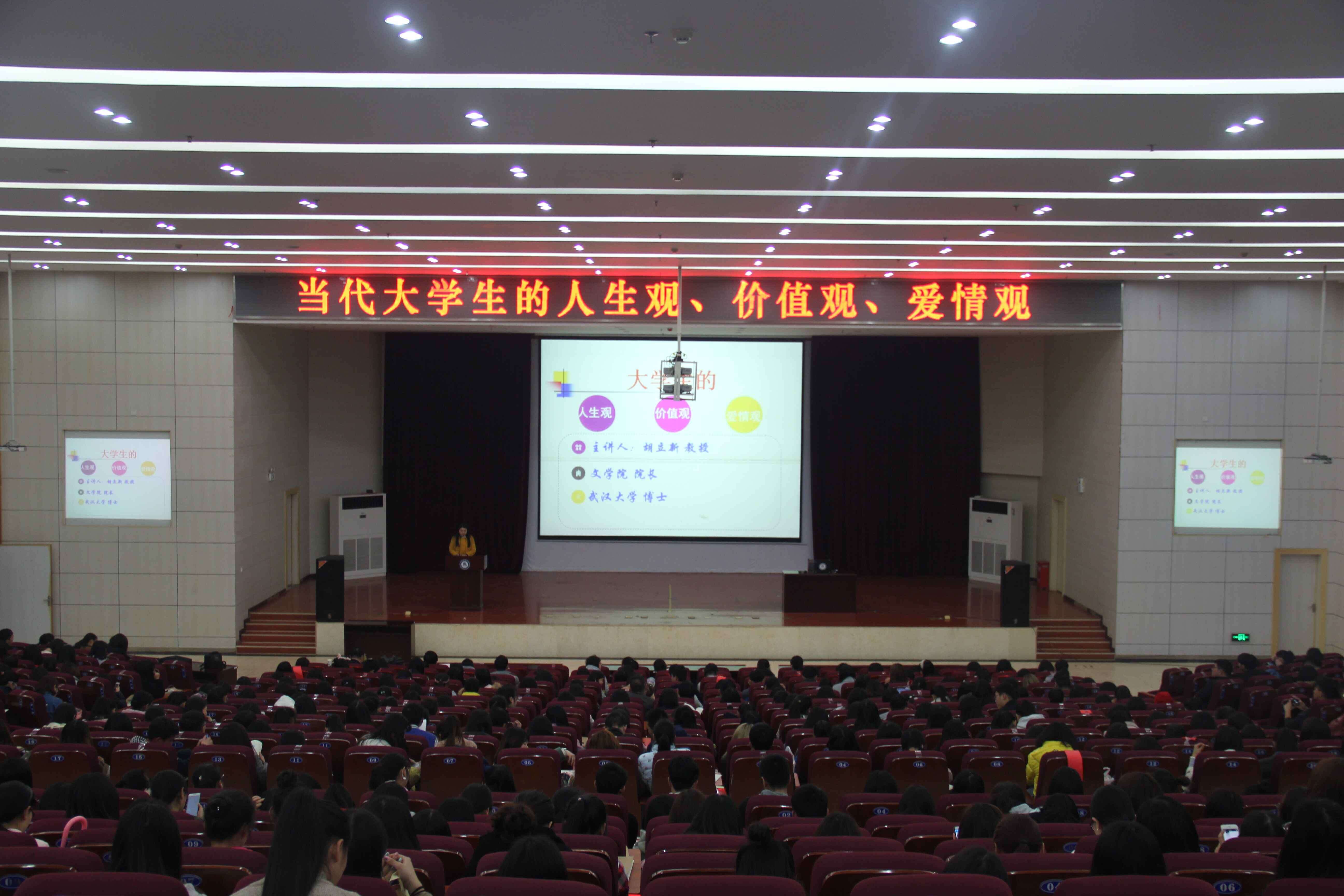 胡立新教授列举典型人物案例,紧扣当代热点话题,生动形象地阐释了“三观”的含义,巧用正反对比,使同学们加强了对“三观”的认识。并结合我院实际,着重强调了当代大学生应该具有的爱情观,即要明辨是非,理性对待爱情,用个人小爱点亮人间大爱。最后他呼吁大学生要努力培育“自然、功利、道德、天地”四种人生境界及对应的人生情怀。
