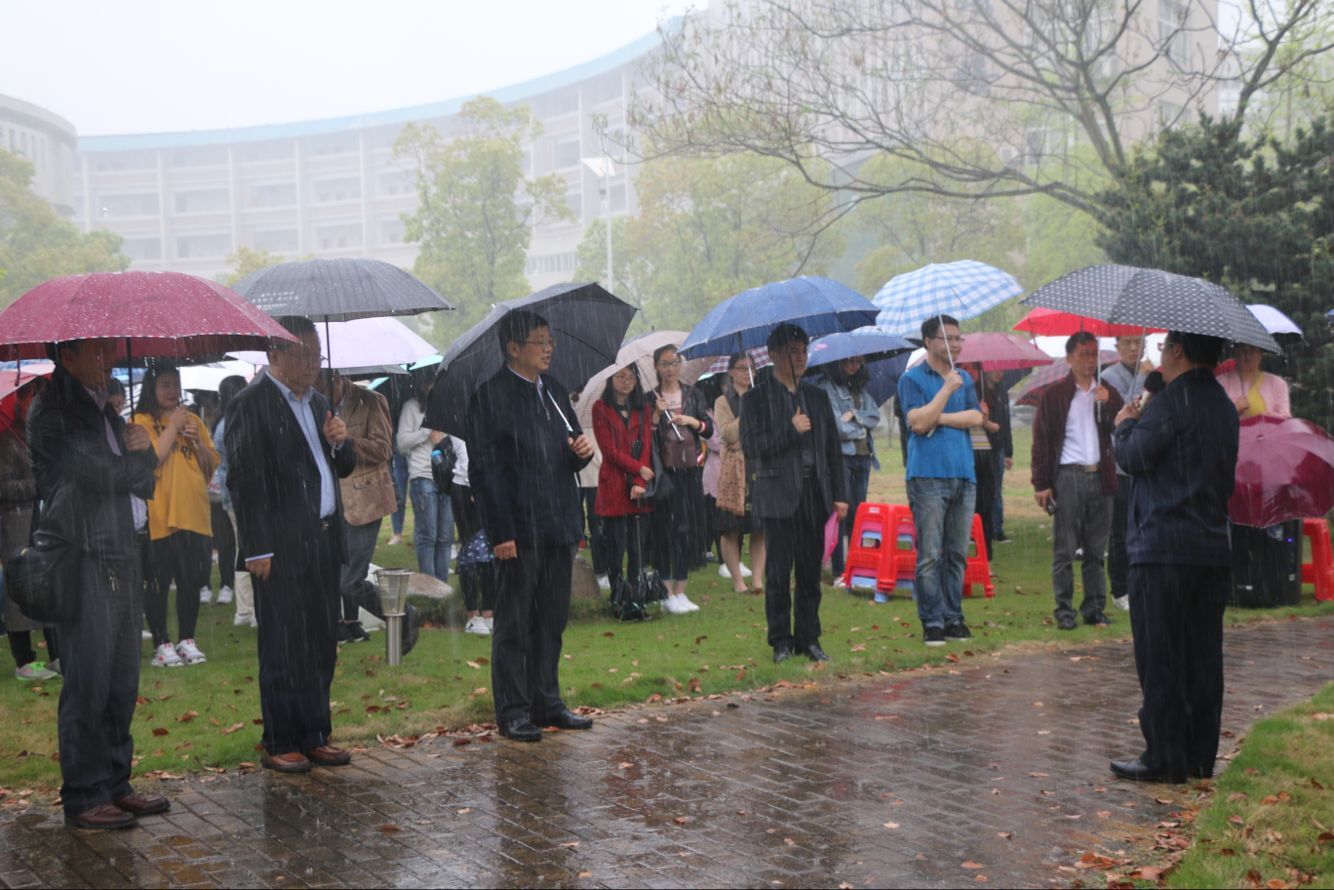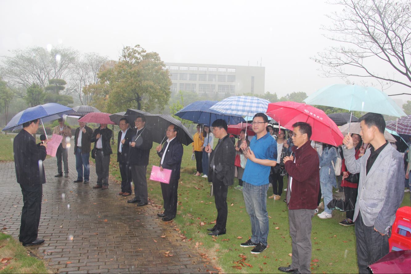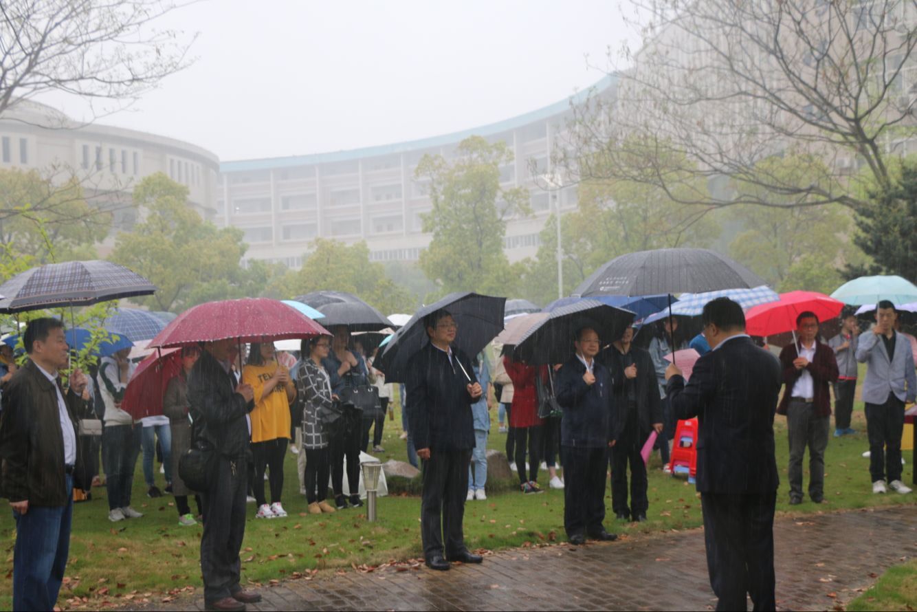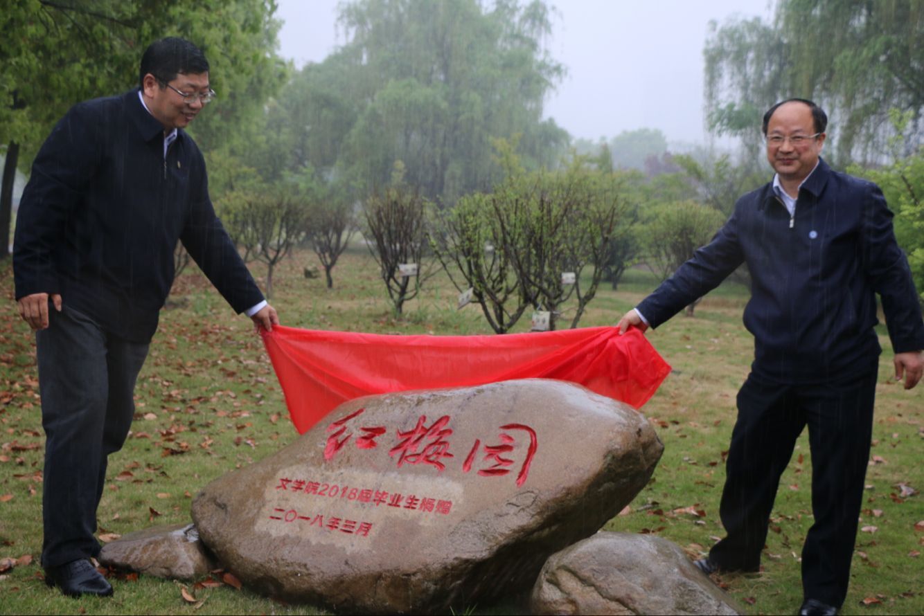 本网讯(通讯员 王艳艳)又是一个春暖花开的季节,又是一个盛满收获的毕业季!我院2018届毕业生在离校之际,自发捐资购买26棵红梅树,为母校捐建红梅园(红梅园位于南校区生态园)。4月12日上午,天降大雨,但挡不住红梅园揭幕仪式的举行。校党委书记王立兵,党委副书记、纪委书记李金奇出席揭幕仪式,并一起冒雨为“红梅园”景观石、“梅园小记”揭幕。