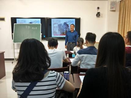 赵基卫老师讲的是朱自清的《背影》,赵老师语言朴实,情感真挚,他结合自身的成长经历,回忆了自己曾经与父亲相处的点点滴滴,情到深处,五十六岁的赵老师也忍不住落下了泪,他的真情深深打动了在场的每位师生。
