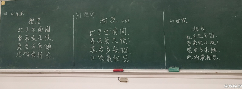 4月29日中午12:30,我院2019年春季学期粉笔字比赛在博学楼116、118、120等3个教室举行。吴作奎、邹明军、张志华、汪璞赟、郭伟、张婧婧等6位老师应邀担任本次比赛的评委。副院长舒开智指导本次比赛,学院共97名学生参加比赛。