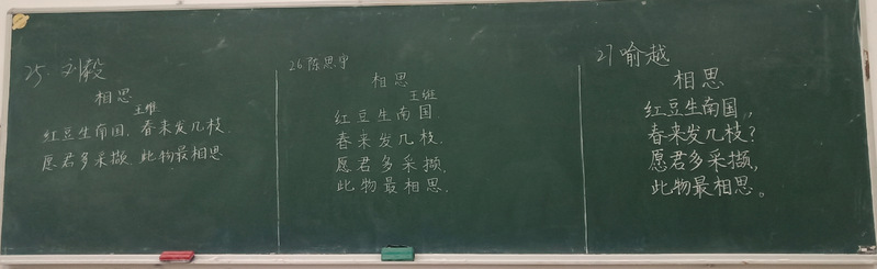 本次比赛以小组为单位进行,一次一组,一组3人,限时4分钟内写完王维的诗歌《相思》。评委老师依据笔法、字法、章法、书写规范、书写效果等5项评分标准进行打分。喻越等6位同学获得一等奖,王泓鑫等11位同学获得二等奖,熊艺等16位同学获得三等奖。