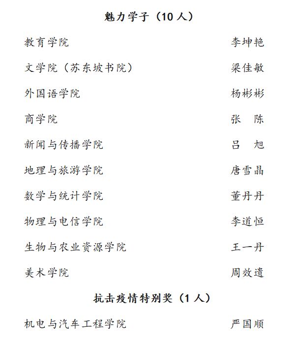根据《关于评选黄冈师范学院2019年度“魅力学子”的通知》的相关要求,经各学院申报,党委组织部、宣传部、学工部、教务处、招就处、科技处、校团委主要负责人及各学院党委(总支)副书记评选,校党委常委会审定,确定以下10名同学为黄冈师范学院2019年度“魅力学子”,1名同学获抗击疫情特别奖。