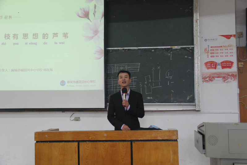 10月17日上午,湖北省特级教师何在海老师应我院邀请,于南区博学楼A01作了题为“做一只有思想的芦苇”的讲座。77779193永利官网副院长方正主持讲座。语文教学论教研室主任万桂红,教学秘书张小琴以及2019级全体学生参加了本次讲座。