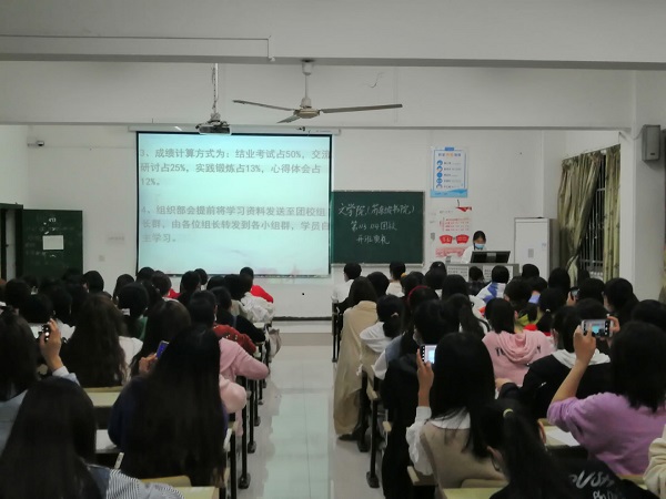 首先,何杉介绍了学习时间、学习板块、成绩计算方式、学习资料、测试内容及结业考试六个注意事项。并讲解了本次团校与往年的不同之处,采用末尾淘汰制、阶段测试、组内讨论、集体与自主学习相结合等新方式,将校团委对团校的严格要求落到实处。