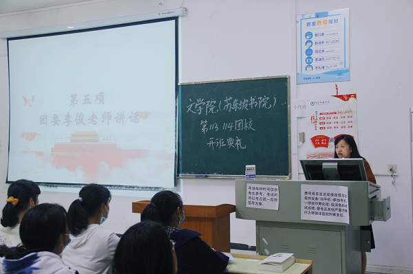 同时,团委书记李俊对本期团校成员提出要求,一是端正学习动机。各成员进行团校学习不为功利,不随大流,不忘初心、坚定信念。二是端正学习态度,面对末位淘汰制的新形势,团校成员更应增强学习自觉性,加强交流,共同进步,不断进取。
