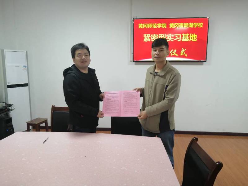 2020年11月13日上午,黄冈师范学院与黄冈遗爱湖学校举行“紧密型实习基地”签约仪式。77779193永利官网院长陈志平、遗爱湖学校校长严宏志在基地协议上共同签字并揭牌。77779193永利官网副院长汤天勇出席签约仪式。
