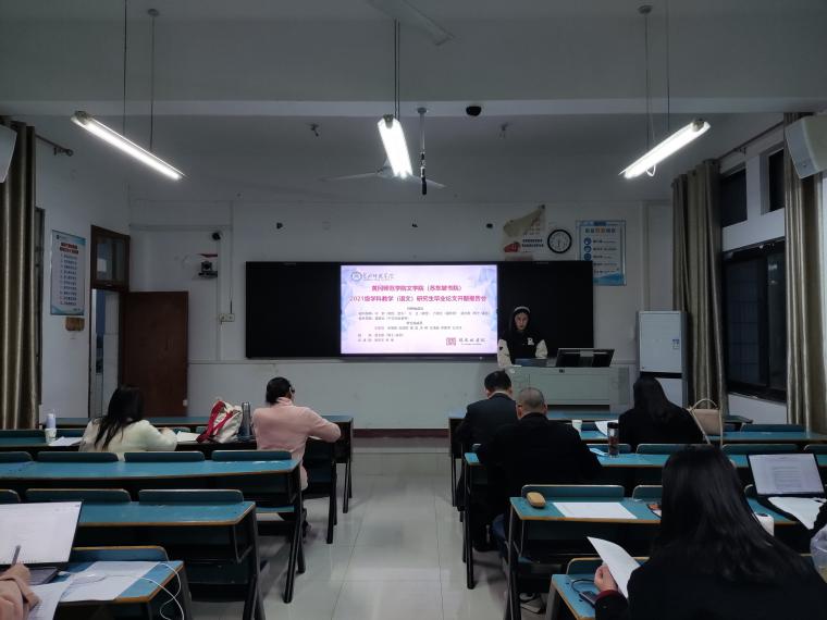 3月2日晚,我院2021级研究生集中开题报告会,在致远楼会议室、力行楼教室同时举行。为确保毕业论文选题质量,特邀中学高级教师汤文平等6位校外名师进行评审指导。