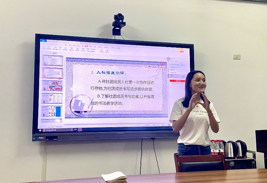 以汗水浇灌,为热爱起舞。清影舞蹈社社长万家月从社团简介、成员介绍、活动介绍、作品展示四个方面为在场同学介绍了舞社丰富有趣的日常活动,并表达对新成员的翘首以盼。
