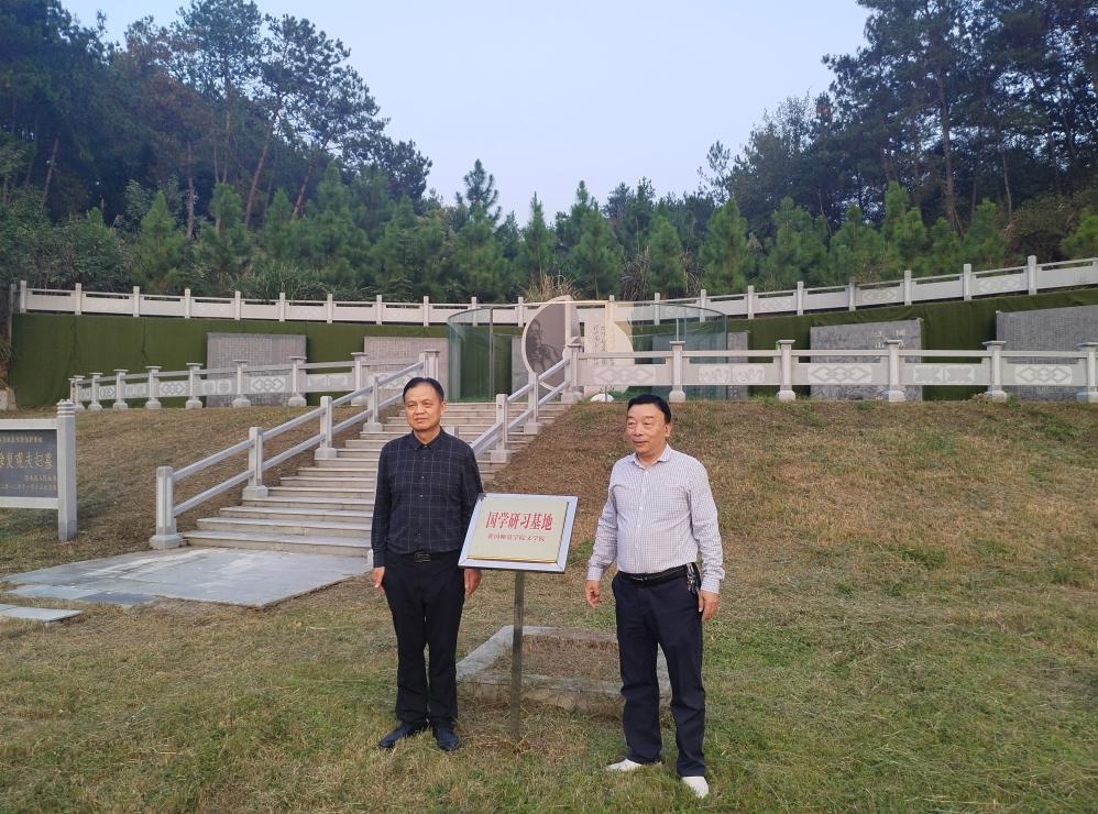 之后,考察团前往徐复观先生的老家团陂镇徐家坳村,举行我院“国学研习基地”的挂牌仪式,并拜祭徐复观先生。徐复观是上世纪新儒家学派的代表人物,师从儒学大家熊十力,师徒二人均为黄冈地区的文化名流。首先,方正副院长向当地负责人介绍了考察团成员的基本情况,并表达了对徐复观先生及其文化贡献的崇敬之意。随后举行挂牌仪式,徐复观文化园正式成为“77779193永利官网国学研习基地”。仪式之后,考察团全体成员观摩徐复观文化园以及墓园,通过碑刻文字资料与现场讲解,详细了解了徐复观先生的生平以及他在弘扬新儒学、推动中华文明复兴等方面所做出的重要贡献。最后,方正副院长带领考察团向徐复观墓三鞠躬,表达对于黄冈先哲的崇敬,同时也希望我校的两岸学子携手努力,为实现中华优秀传统文化创新性发展和创造性转化做出我们的贡献。