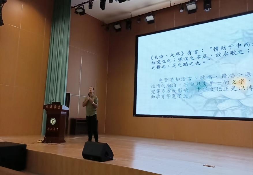 下午,考察团驱车前往浠水县团陂高级中学进行学术交流活动。方正副院长向校方赠书,并对我院与地方学校的进一步合作交流作了展望。之后,我院徐怀之博士为团陂高中的师生们作了名为《自古诗词吟唱谈两岸语文教育》的主题讲座。许老师从古诗词的发音特征以及吟唱技巧入手讲解,带领学生们领会中华传统诗歌吟唱的传统魅力与文化价值。同时,他还谈到了两岸学者、学生通过古诗词吟唱活动与语文教育建设平台的搭建,从而增进了两岸青年的交流与友谊。此次讲座受到了团陂高中师生的热烈欢迎,会后“小粉丝”们纷纷与徐怀之老师签字留念。