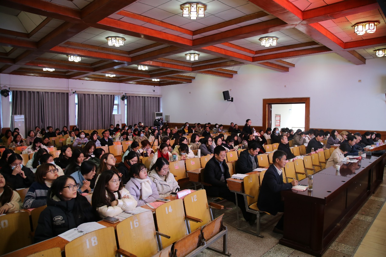 我院教授胡立新从“课堂评价标准、课堂宏观构思、课堂情境呈现与问题设置等方面为在场老师明确了一堂好课的标准,也为教师们的课堂教学指明了方向。