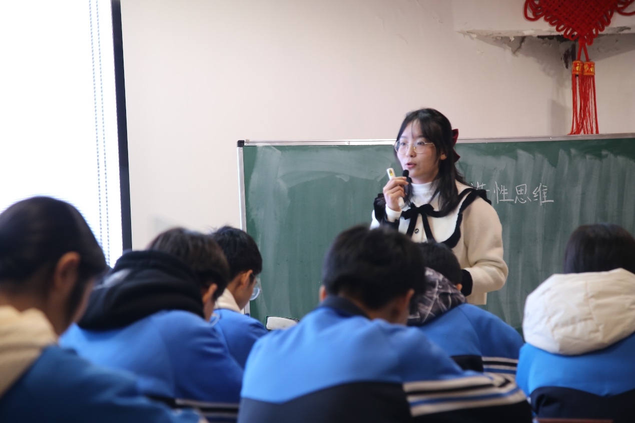 会议第二项,由武穴市实验中学骨干教师邹继承与我院22级学科教学(语文)研究生刘佩如对《谈创造性思维》一文进行同课异构,两位老师从不同的侧重点展开授课,共同指向学生思维能力的发展与提升。