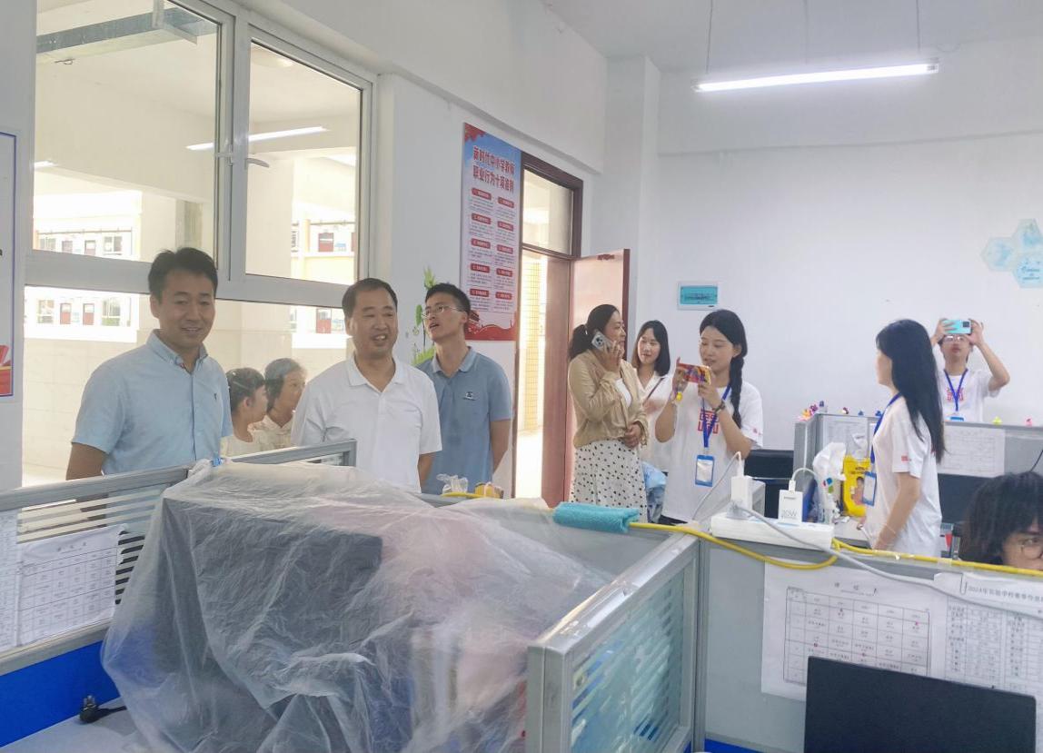 随后,一行人走进队员们的教学区与办公区,与同学们亲切交流并详细询问了队员们的作息时间、教学进展以及生活状况,肯定并赞赏了他们吃苦耐劳的精神。肖亚军勉励队员要珍惜实践机会,在实践中明确目标任务,将所学所思所想融入到真实的课堂教学中,真正做到学以致用、融会贯通。争取在实践中积极锻炼自我,奉献自我,展现当代大学生的精神风貌。王艳艳叮嘱队员在做好支教工作的同时,务必重视安全管理工作,确保每位队员及学生的身心健康与安全。同时,她鼓励队员们加强学习、认真总结、积累经验,在实践中增长才干。